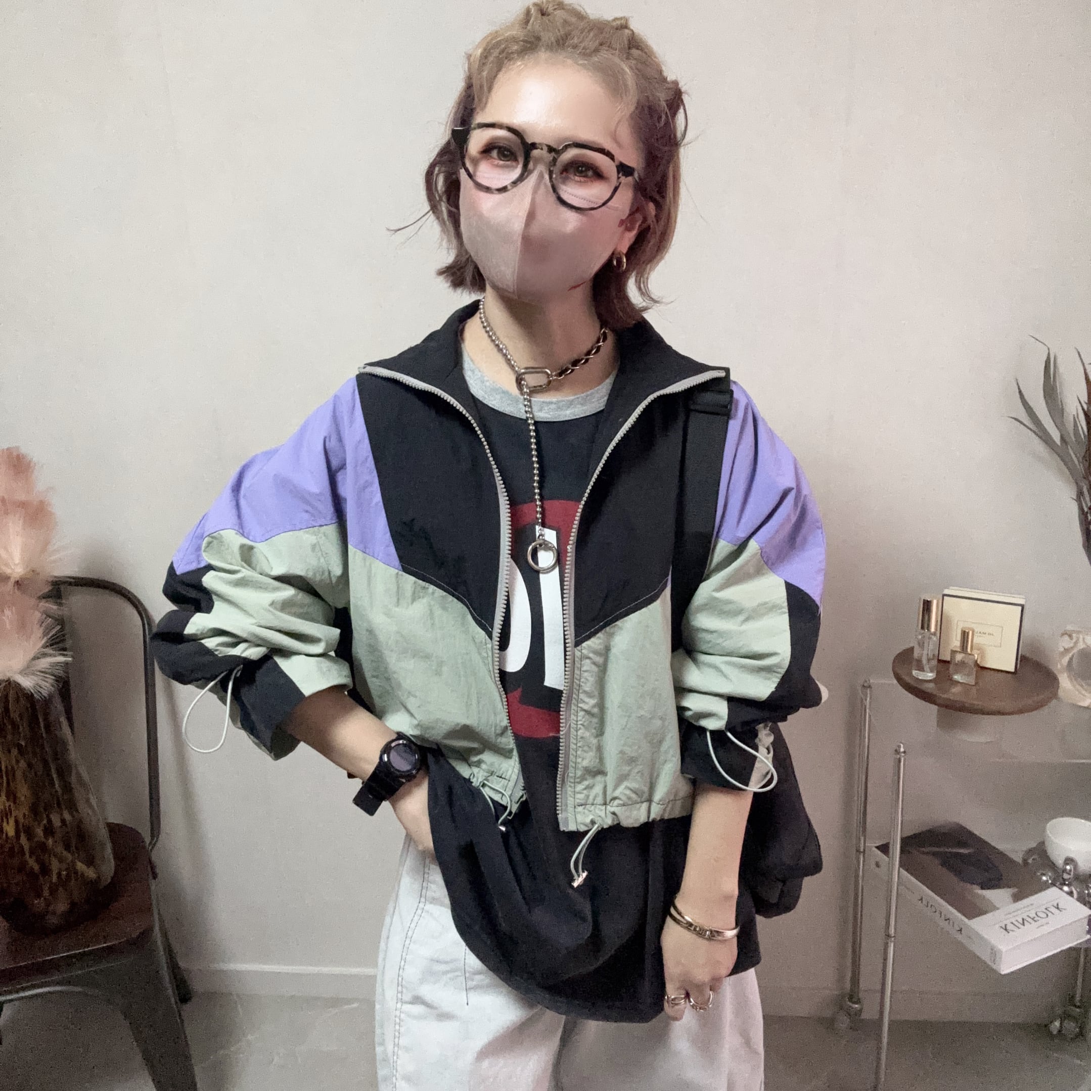 マルチカラーでショート丈なので、どんなスタイルにも合わせやすいデザインです。