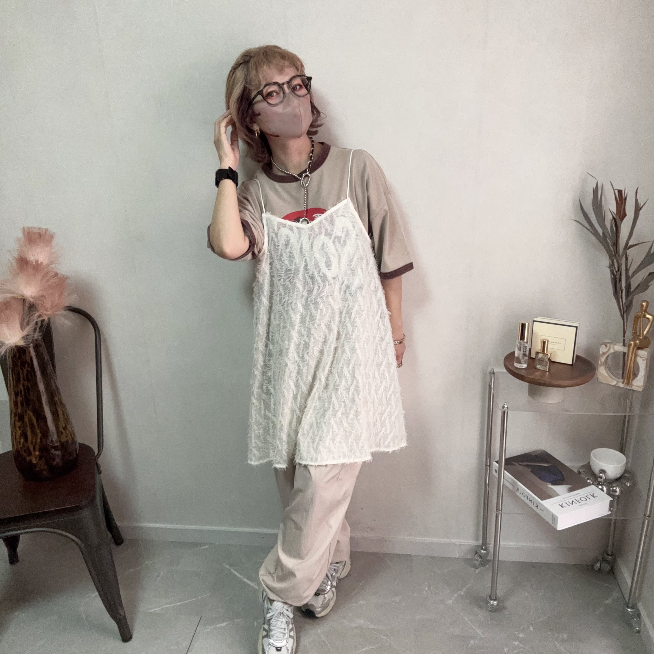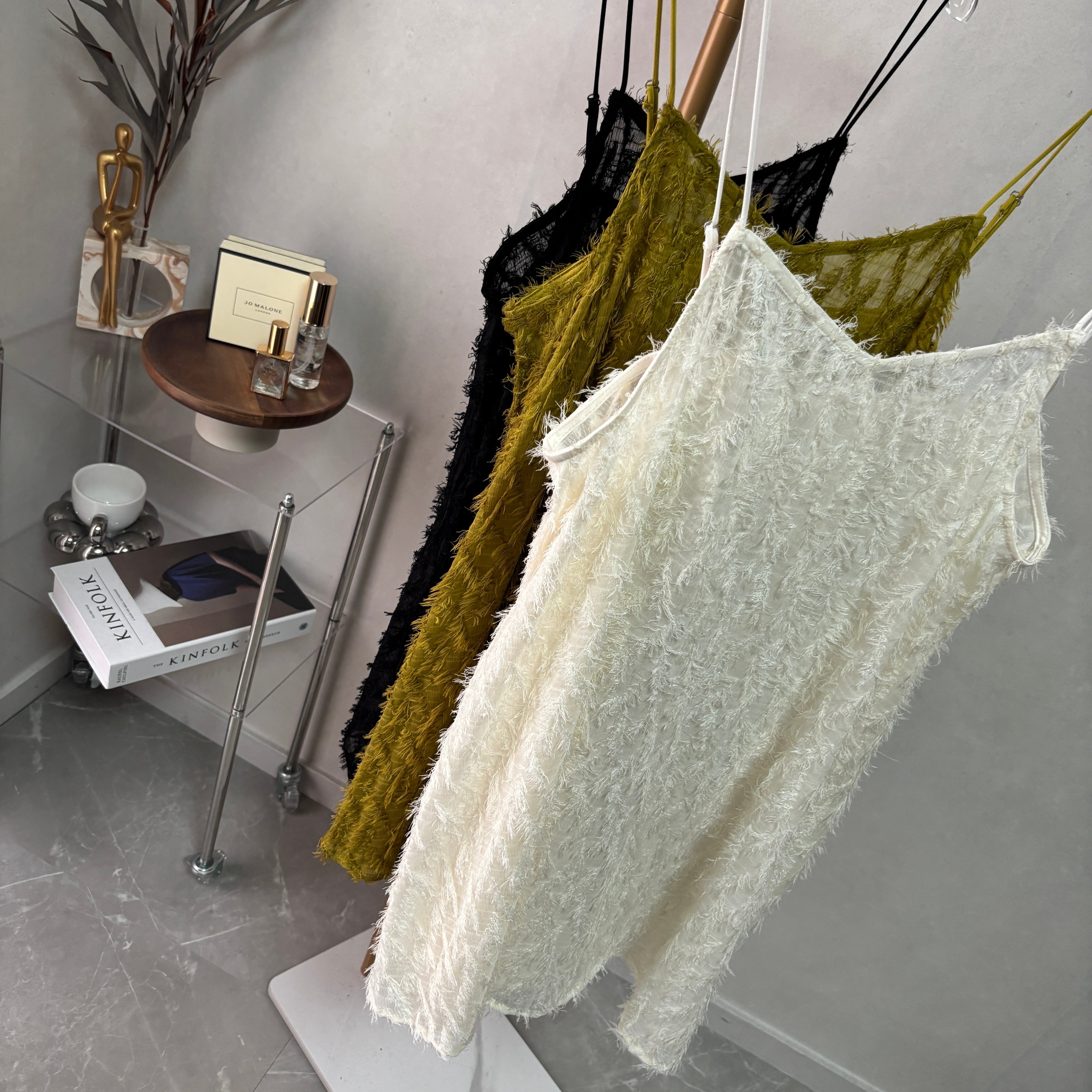 sheer fringe camisole OP【White】