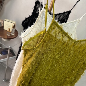 今季のトレンドを押さえたシアーフリンジキャミワンピース。