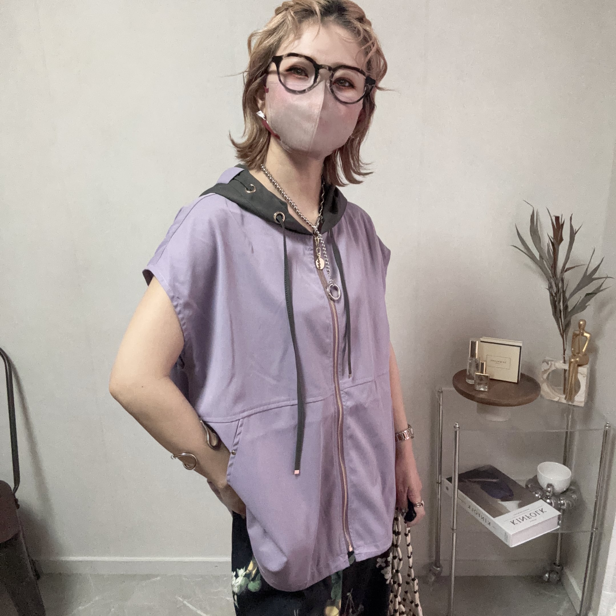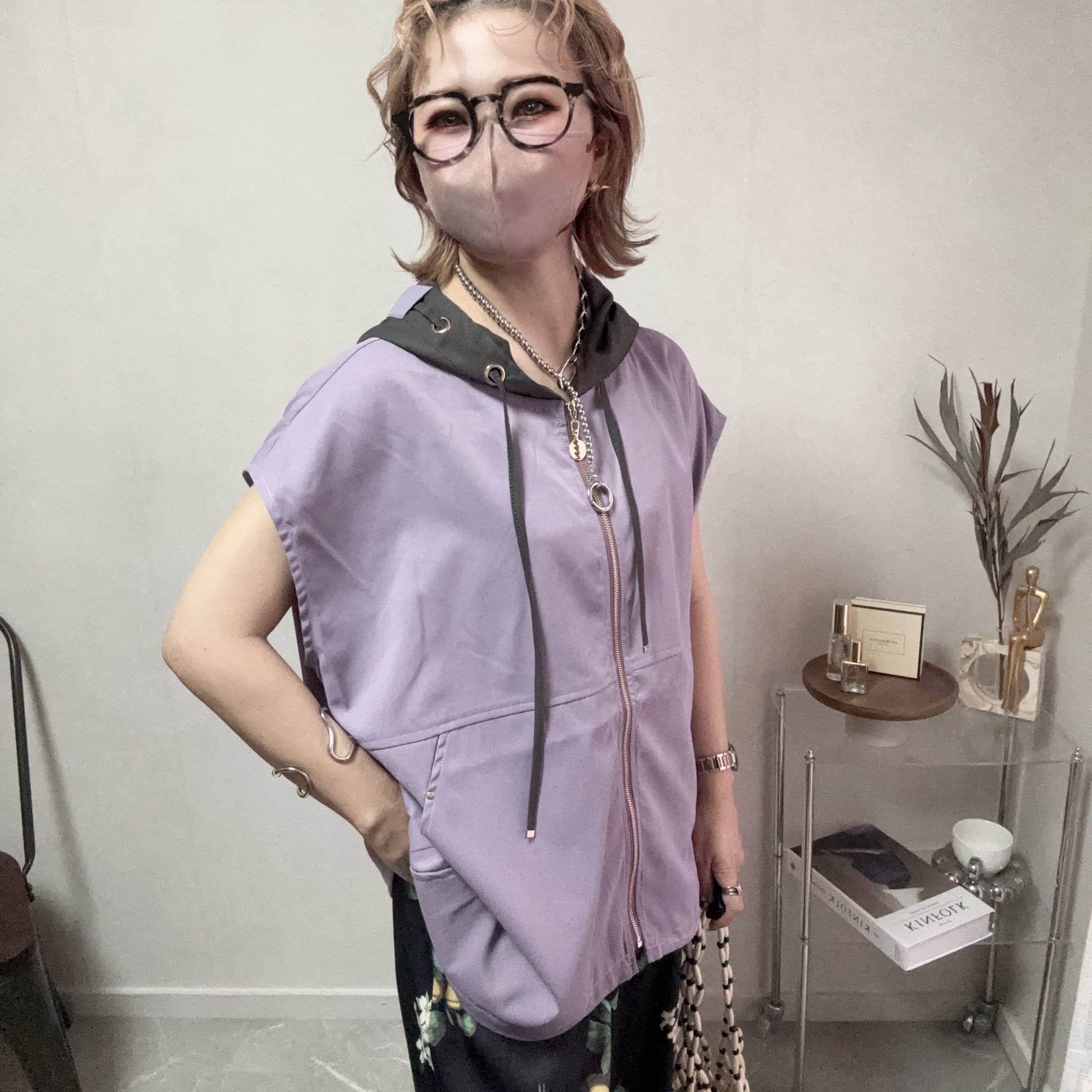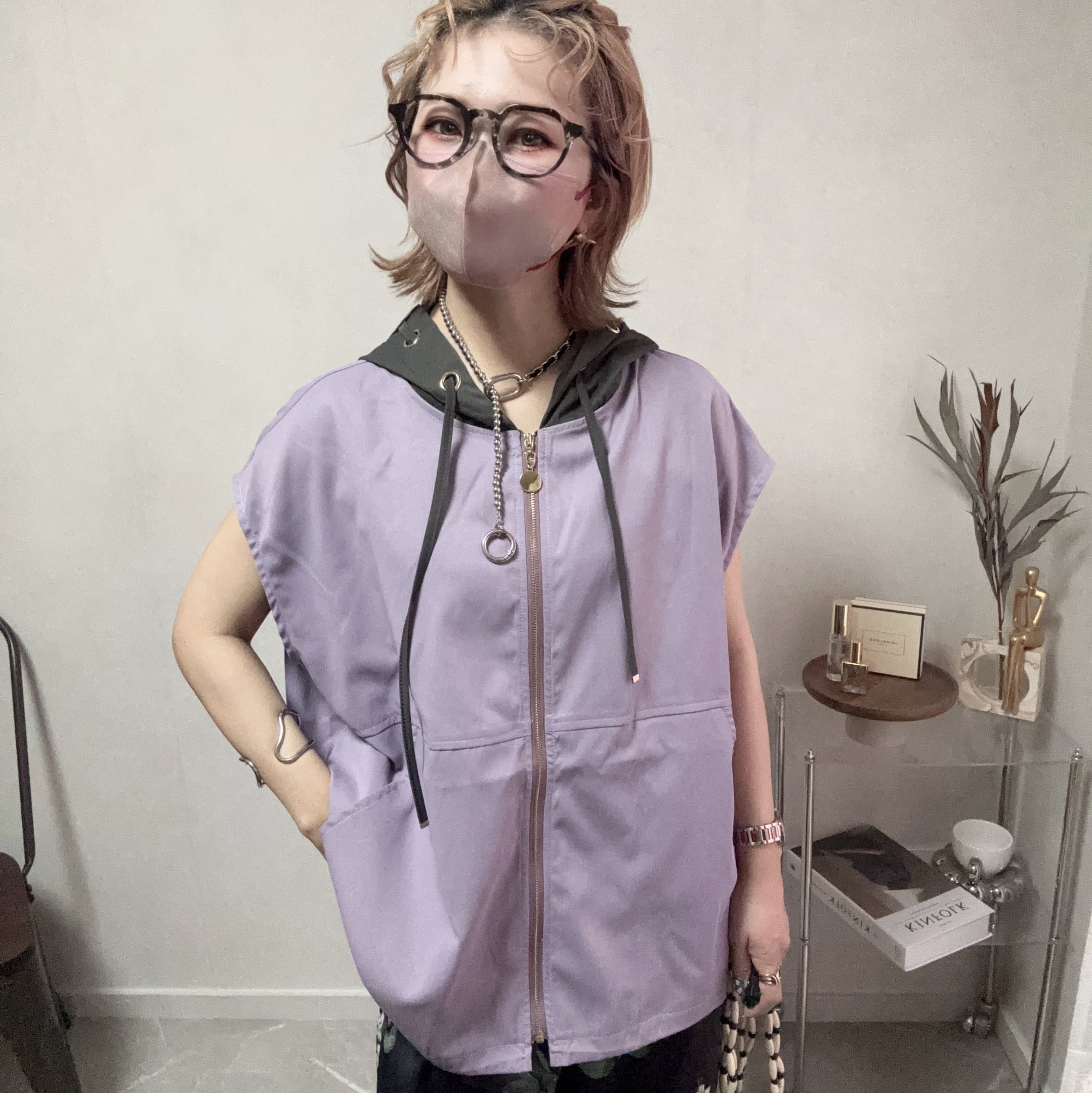 お尻が隠れるほどの安心感のあるビッグシルエットが特徴の、ジップアップフーディベストです。