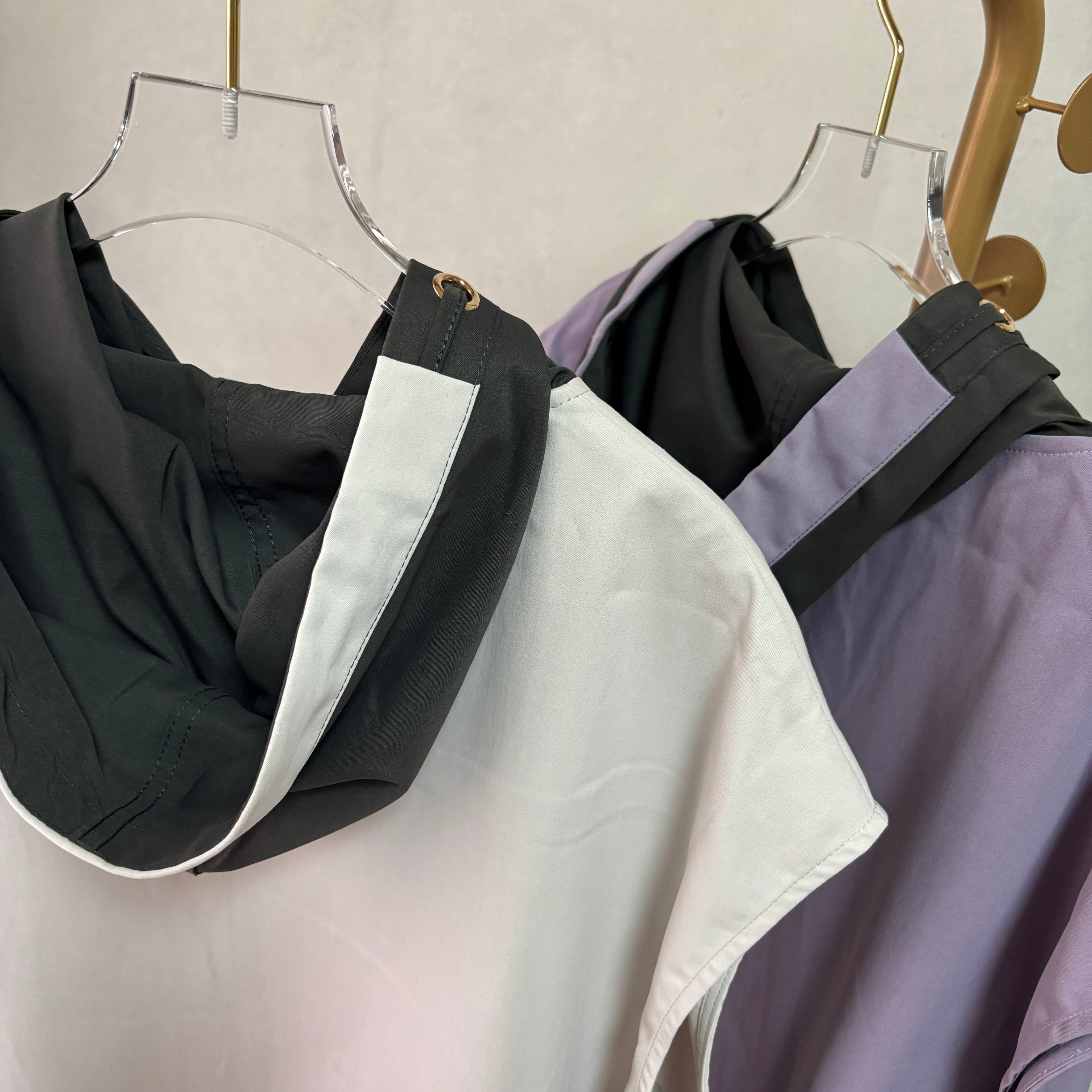 最大の特徴は、フード周りに贅沢に配されたハトメ(アイレット)のライン。