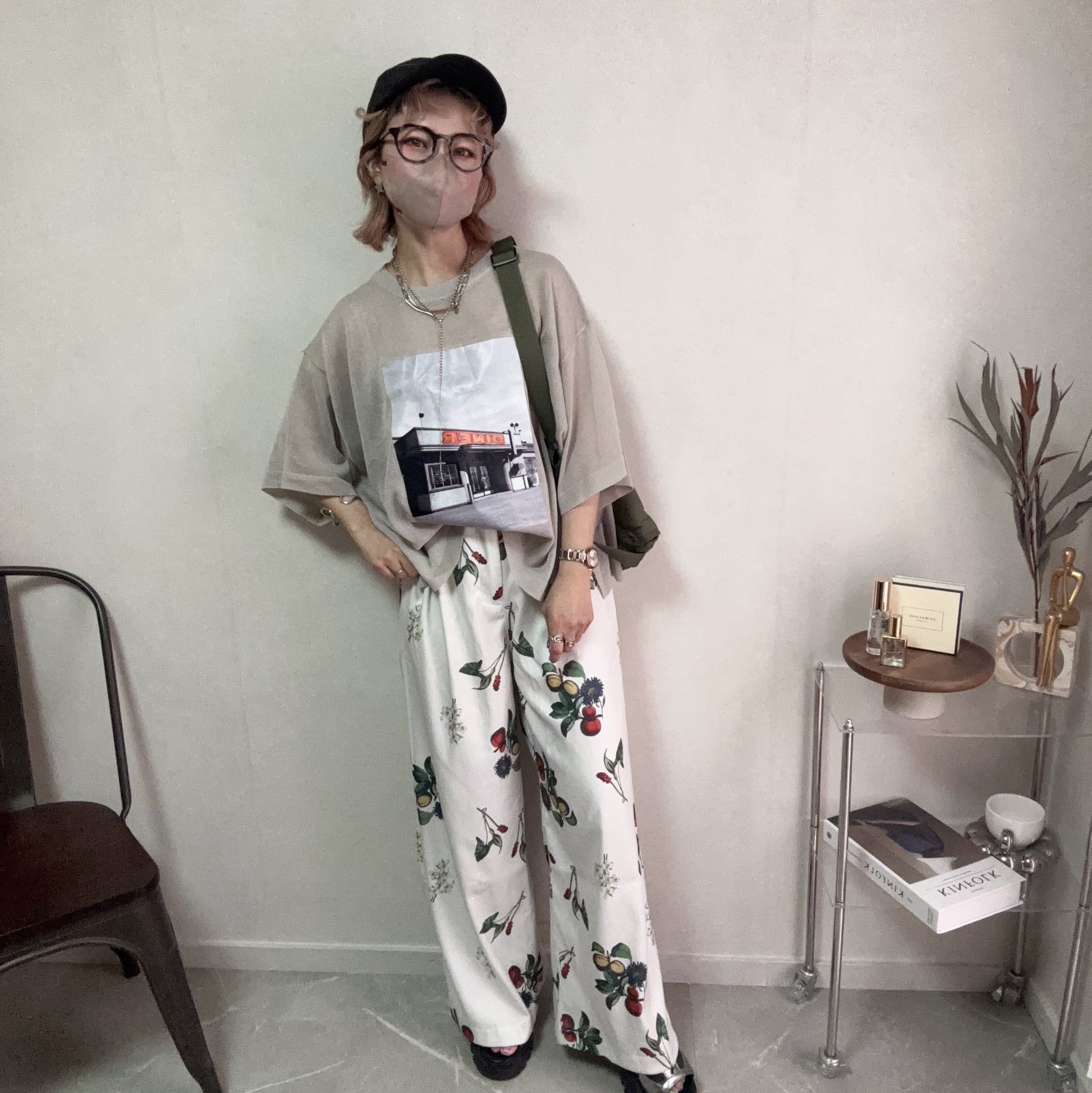 シンプルなボトムスと合わせるだけで、センスの良いスタイリングが完成。