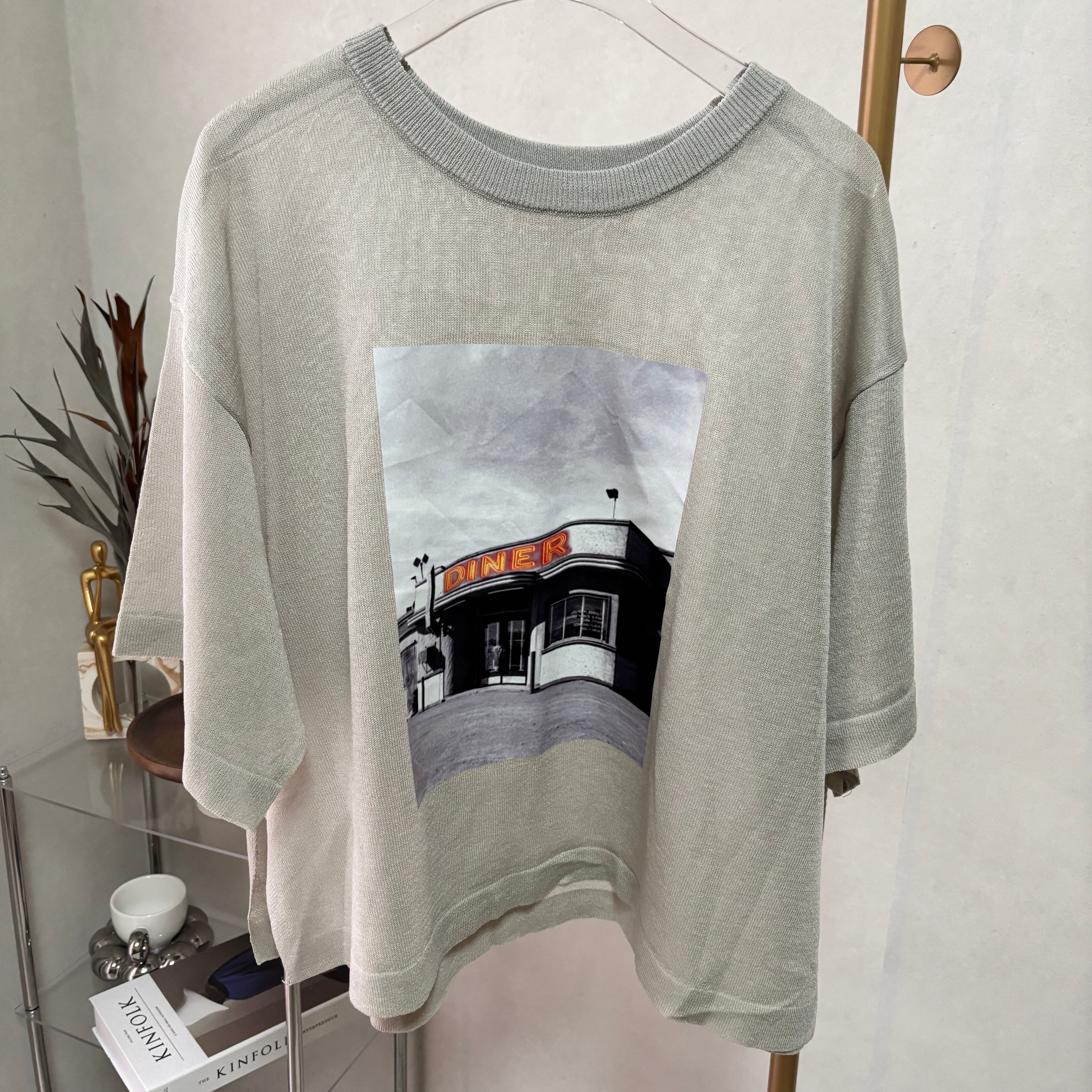 photo print sheer tops【Greige】