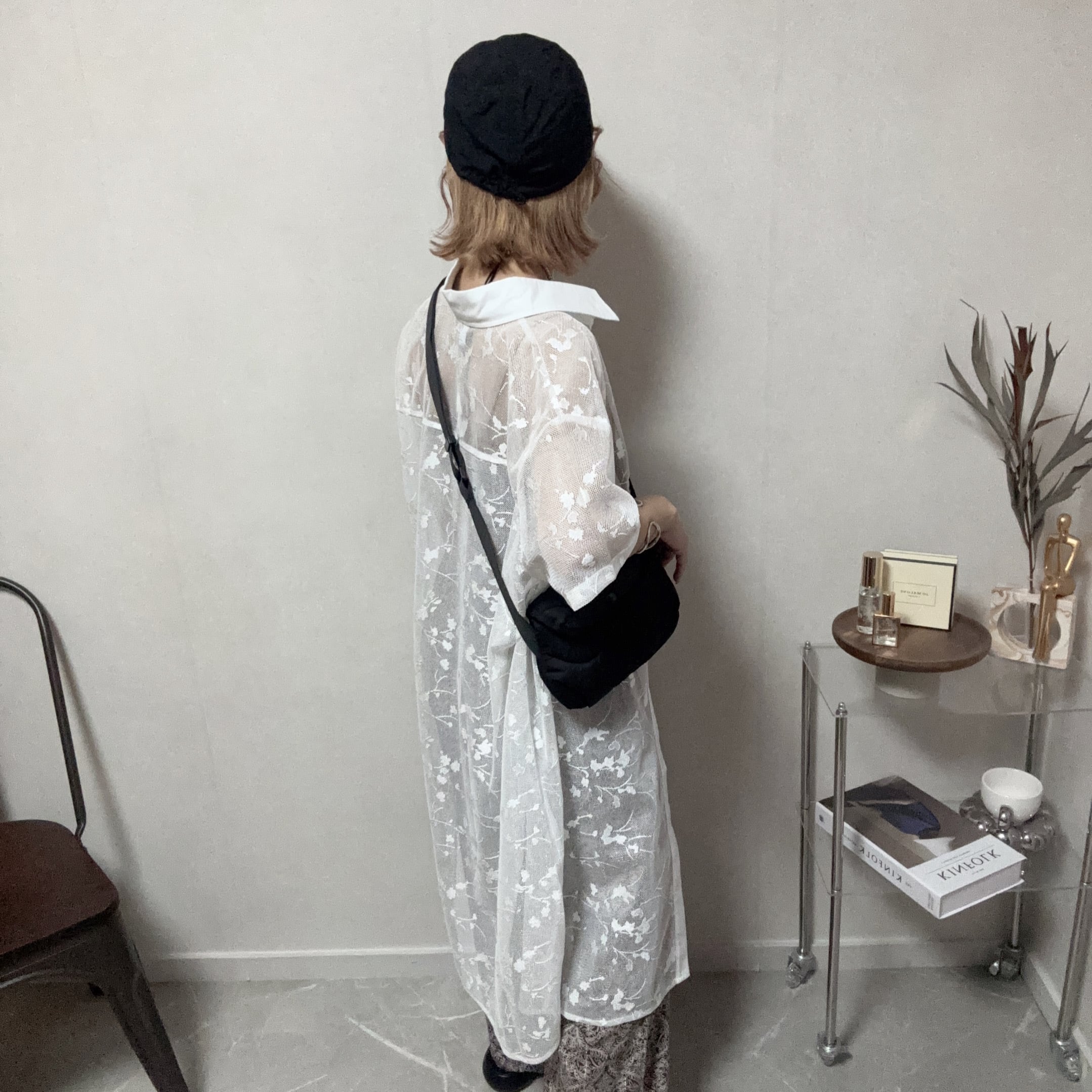 透け感のあるシアーな生地は、季節感を演出しながらも上品な印象を与えてくれます。