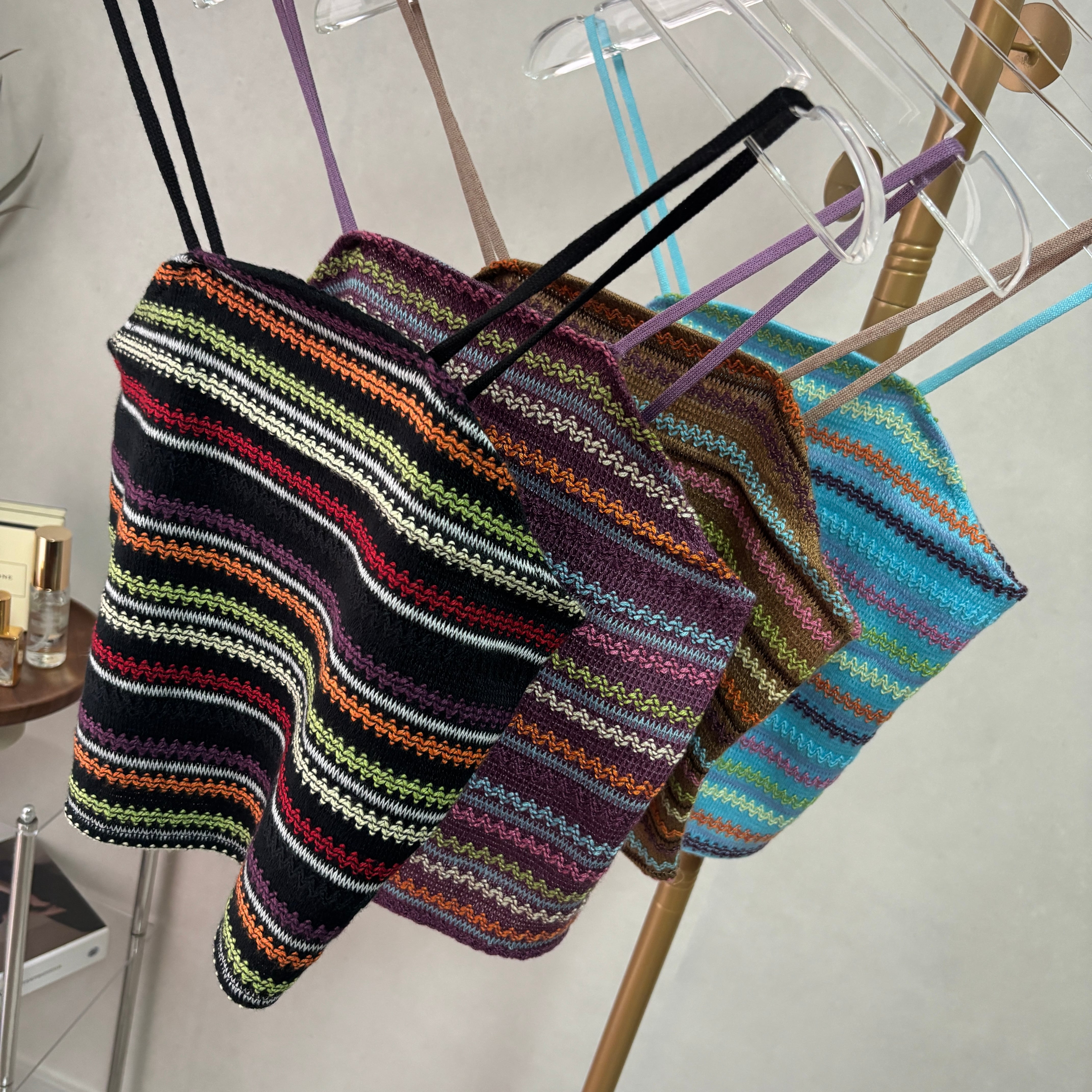 オシャレで大人なマルチカラーが魅力的なリブキャミソール。