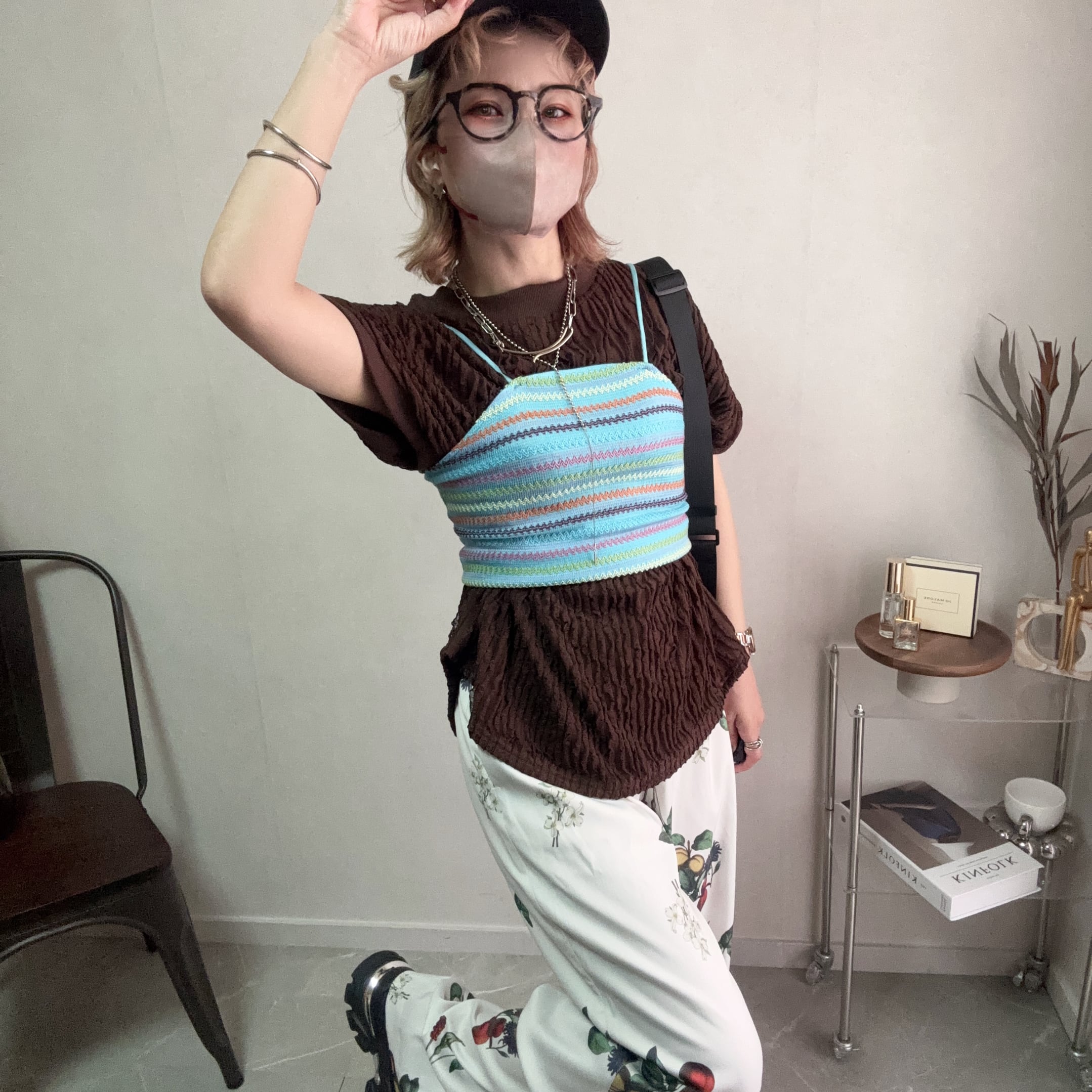 multicolored stripe camisole【Light blue】