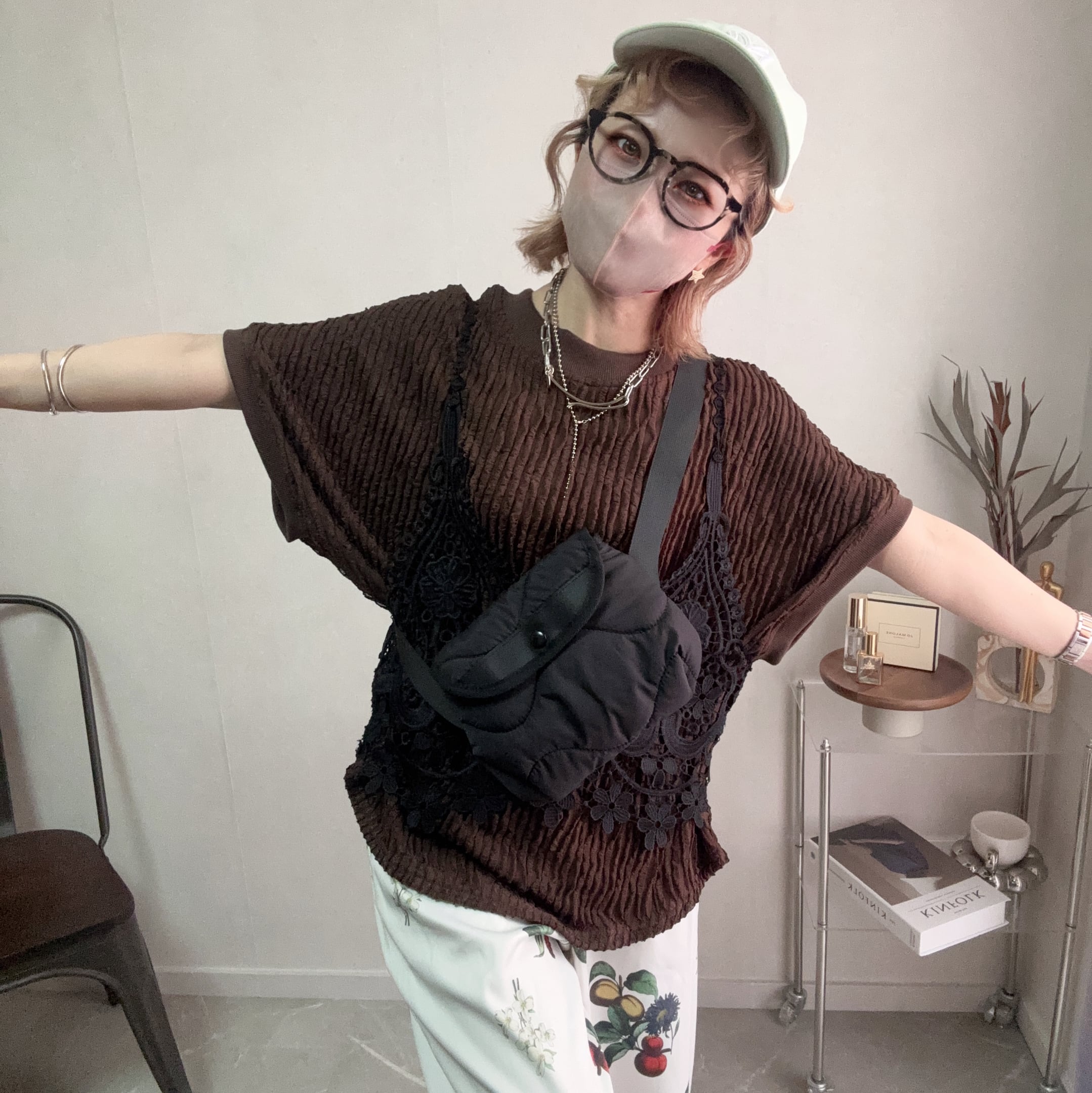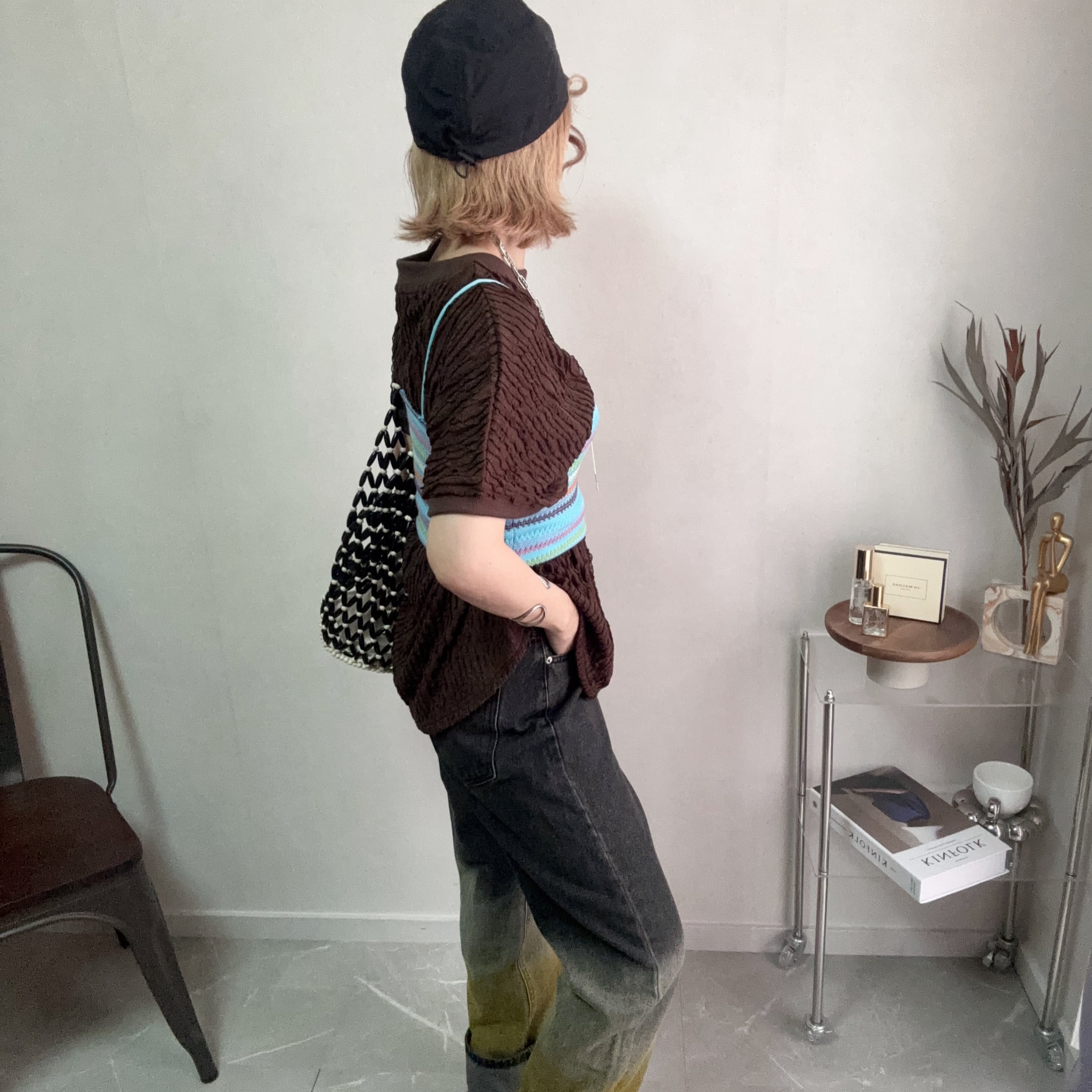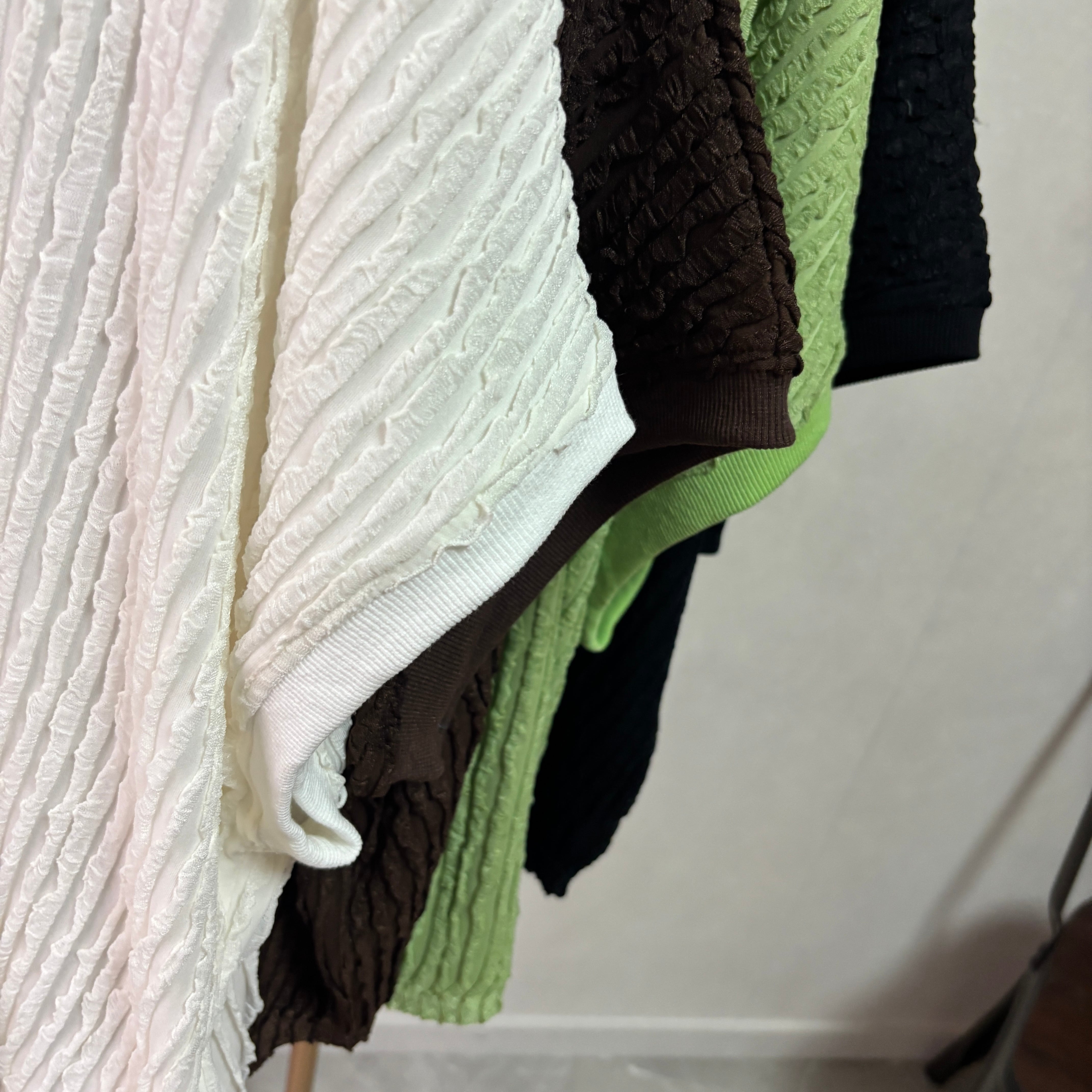 動くたびに小さく波打つフリルが、シンプルなTシャツスタイルに立体感と華やかなニュアンスをもたらします。