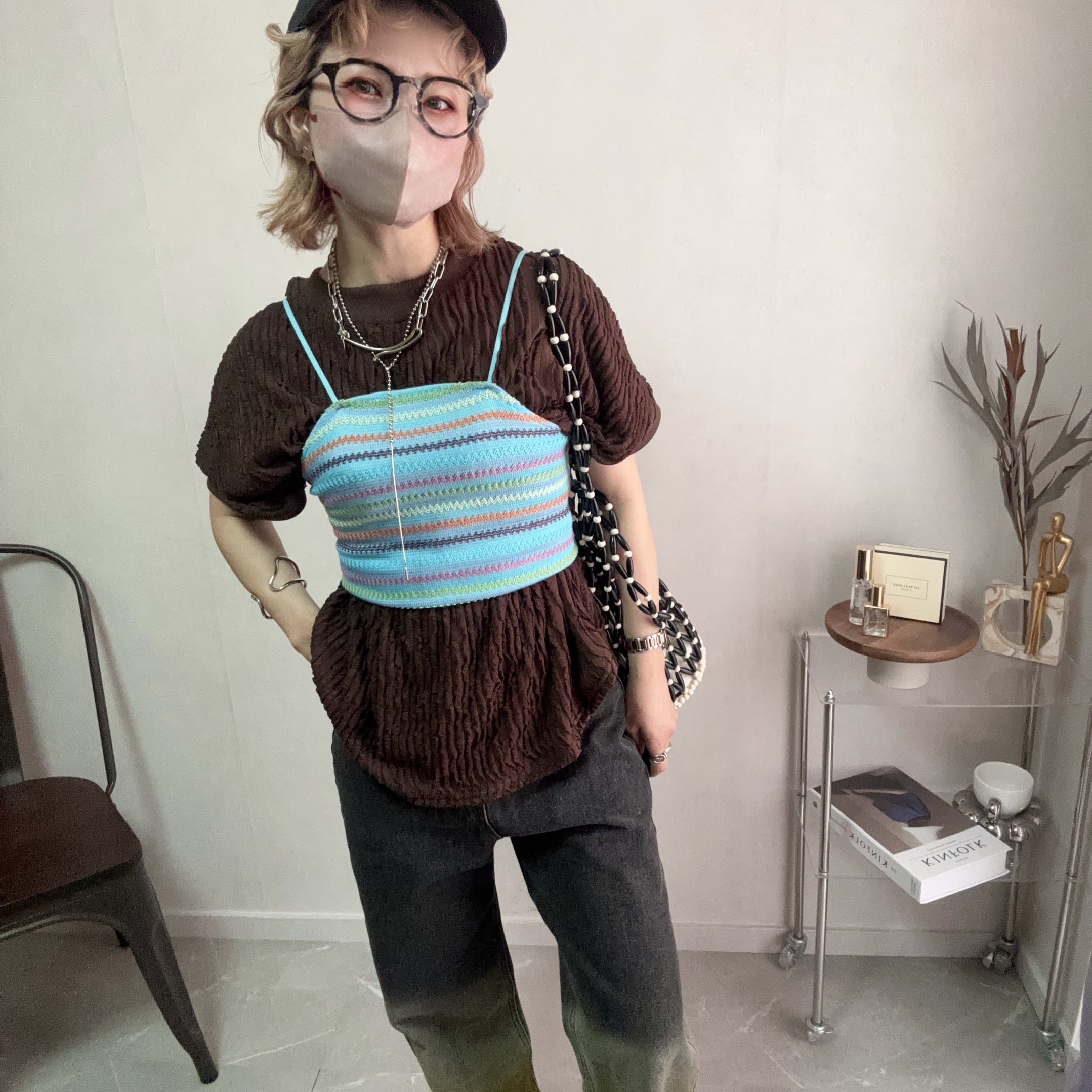 また一枚で着てフリルのデザインを主役にするのはもちろん、ベストやサロペットのインナーとして使い、袖口や裾からフリルを覗かせるレイヤードスタイルも非常におすすめです。