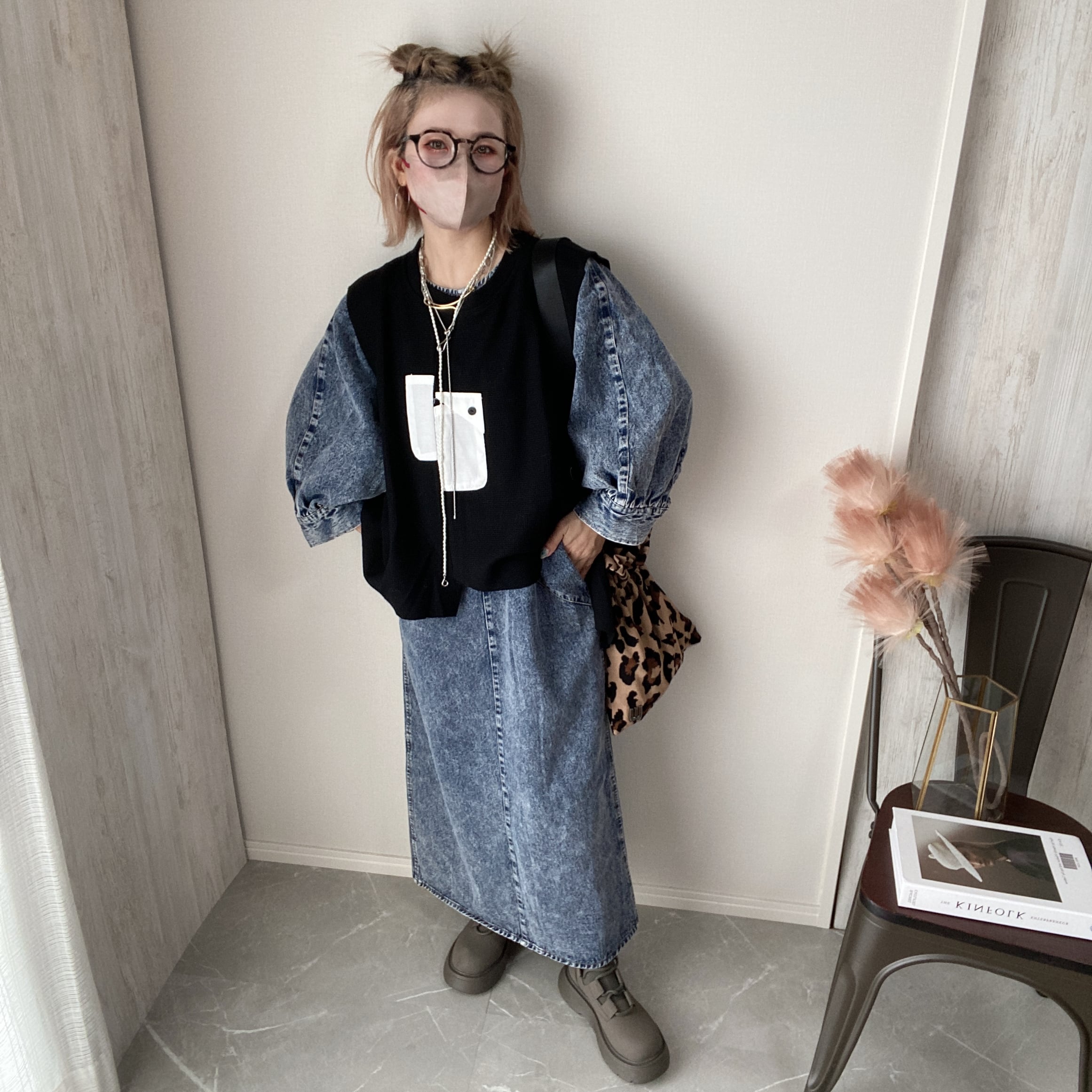 袖のないデザインなので、他のアウターとのレイヤードスタイルも楽しめます♪