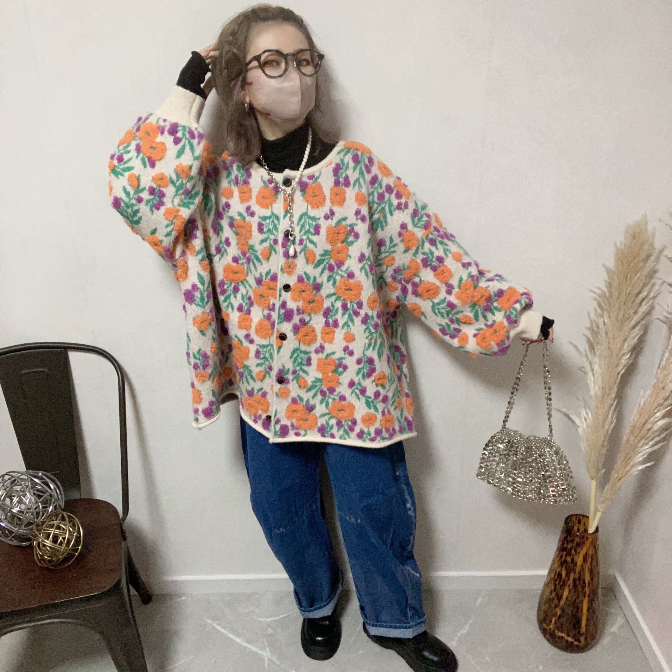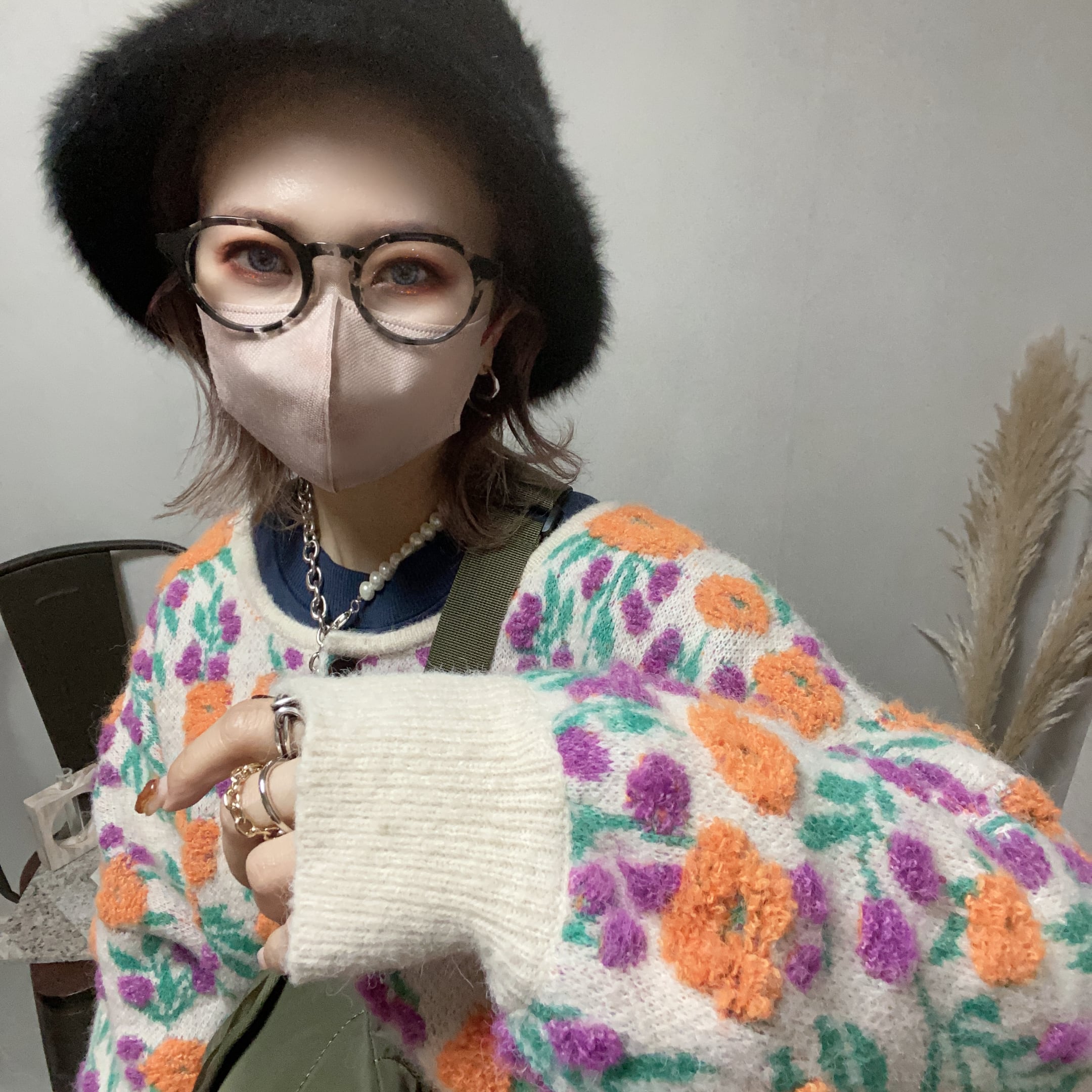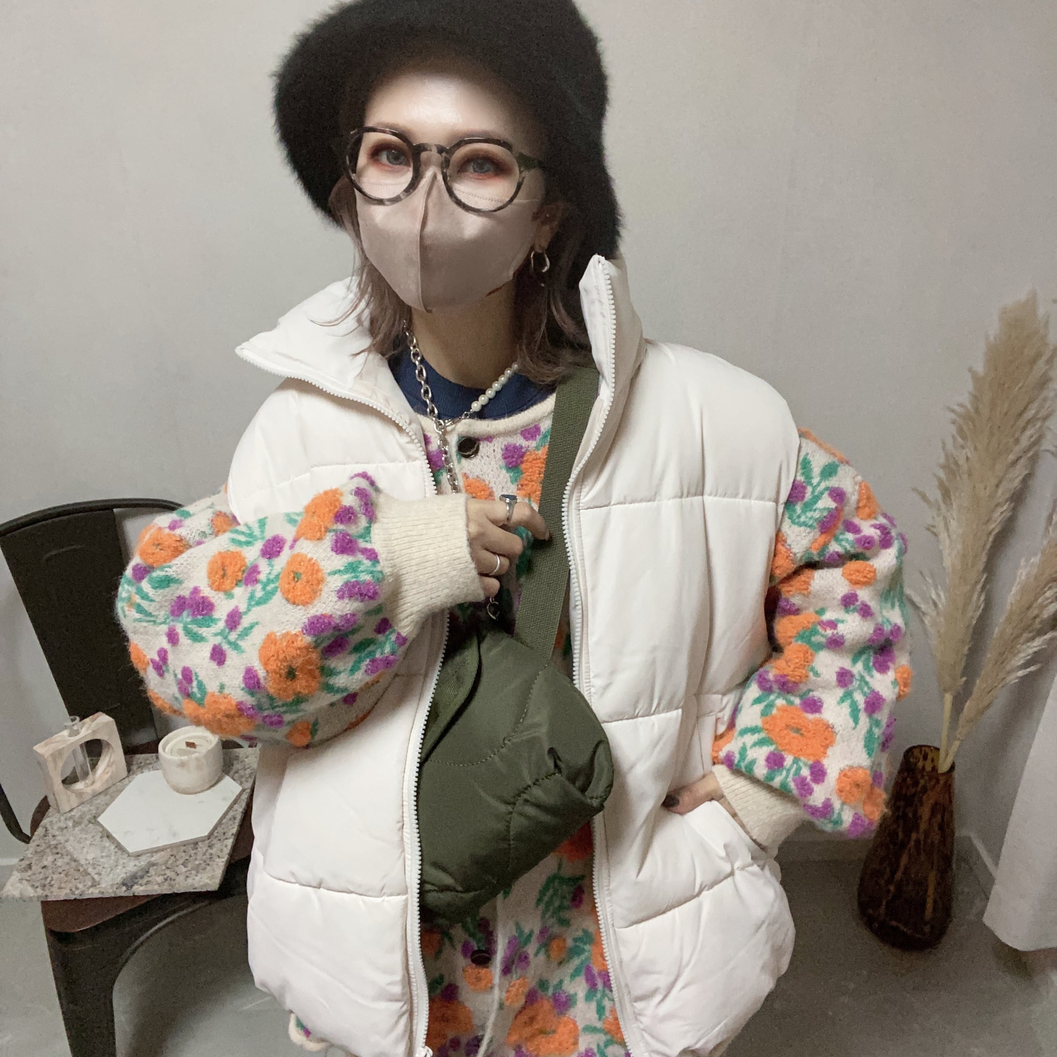 立体感のあるモコモコのフラワー刺繍が施されており、温かみと華やかさを兼ね備えています♪