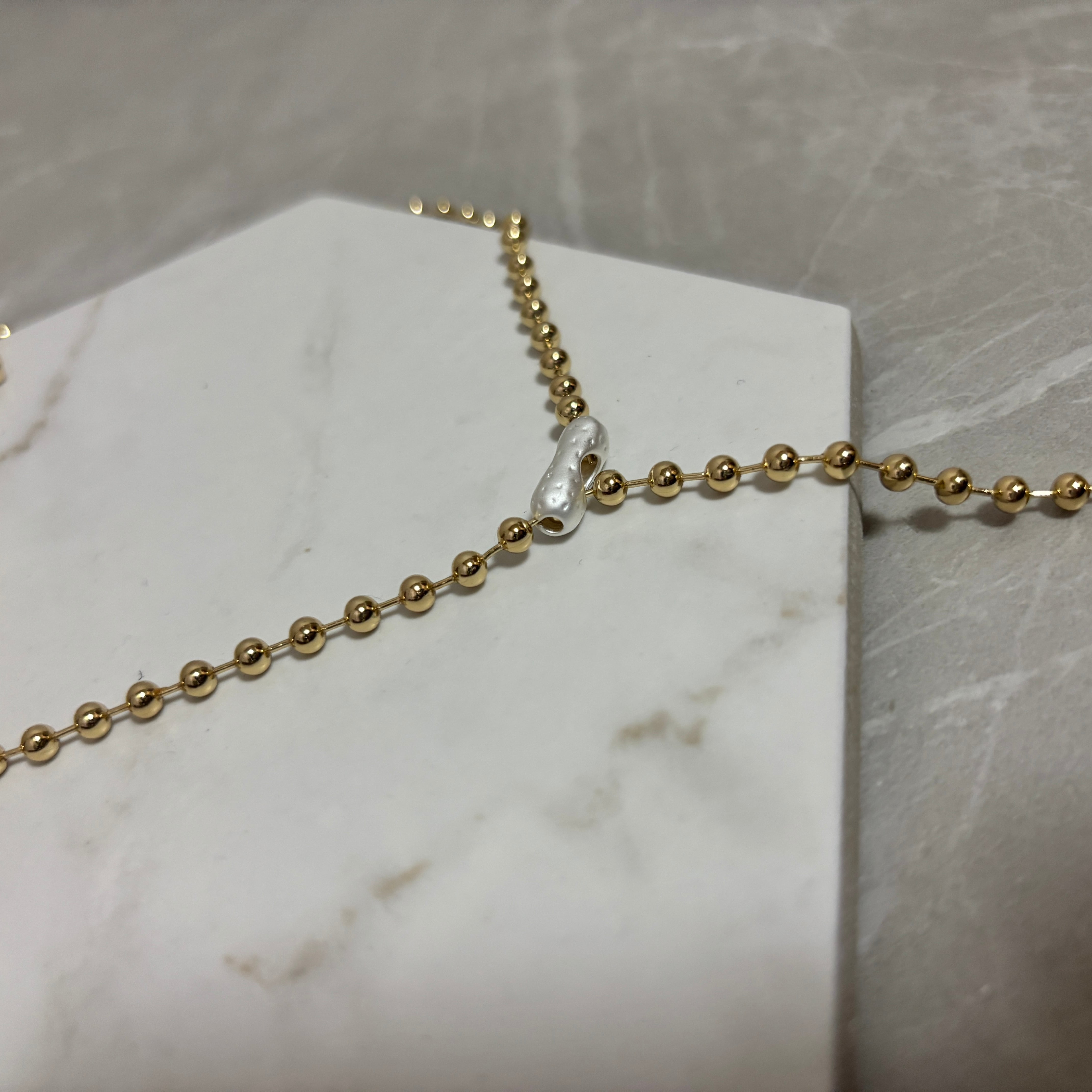 いつものコーデに新鮮さと華やかさをプラスする、バイカラーマルチウェイボールチェーンネックレス。