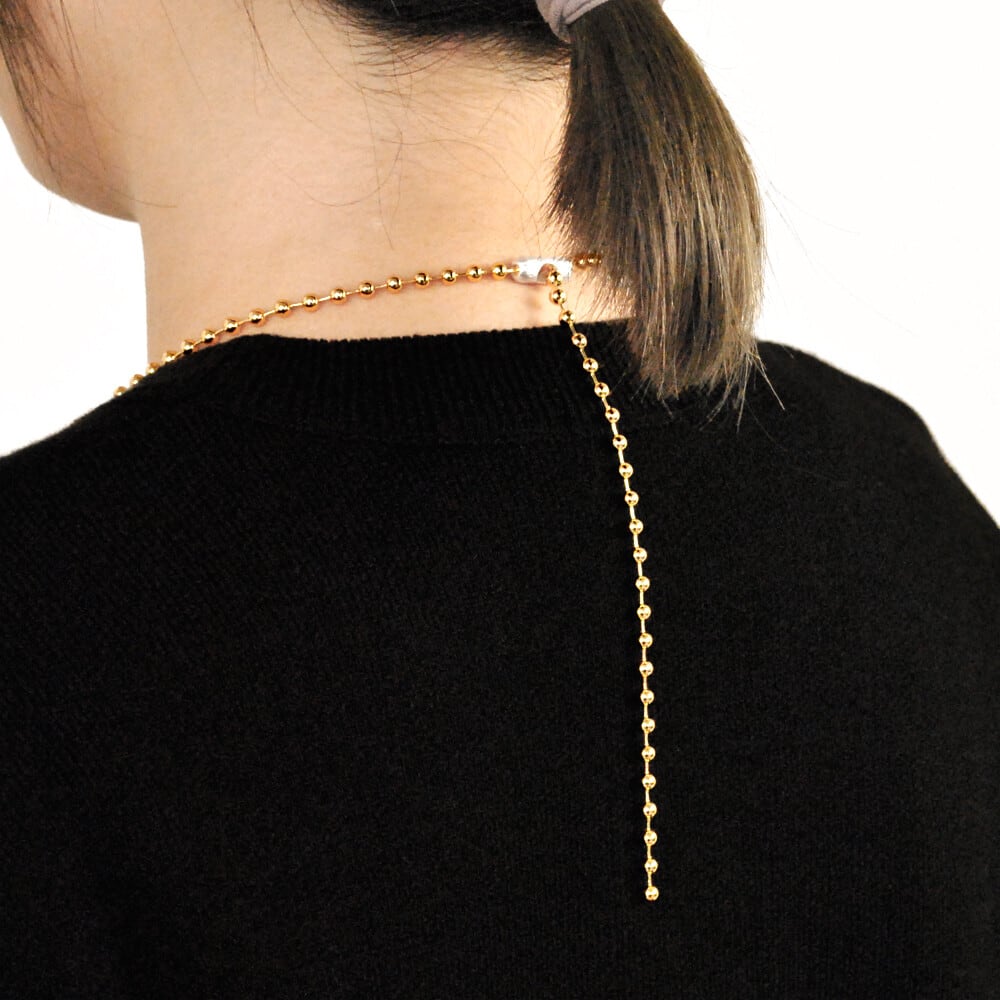 留め具部分からチェーンをスライドさせてY字シルエットやノーマルチェーンにしたり、その日のシーンや気分に合わせてアレンジが可能◎