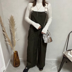 胸元・サイドにはポケット付きで、デザイン性と実用性を兼ね揃えたサロペット。