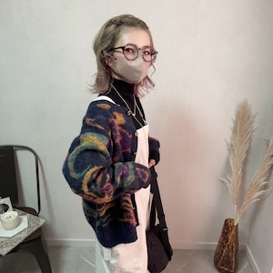 paisley pattern mohair knit CD【Navy】